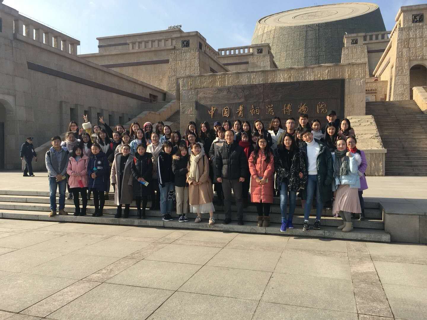 王伟老师与英语系15级(01)班、(02)班全体员工在中国青铜博物院合影