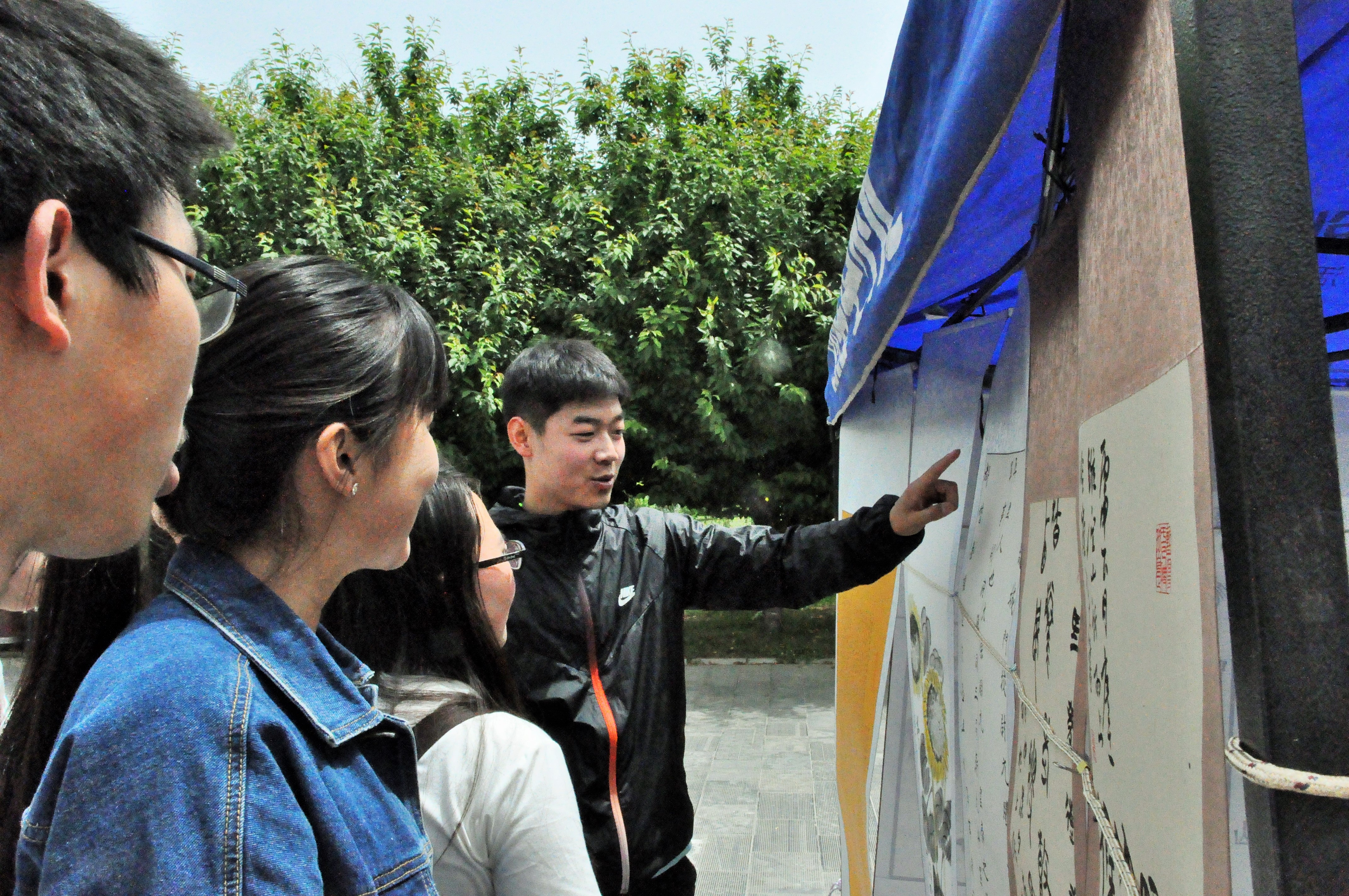 子衿文化广场系列活动的开展,是公司在结合公司人文社科类专业特点,积极创新,以子衿文学社、老员工礼仪社团、老员工法律协会、骊墨书画社、外语联盟、英语俱乐部、模拟联合国七大专业员工社团为载体,展示学子人文素质和人文修养,开展校园文化活动的平台。在启动仪式上,以赠送书签的方式向来往同学们宣传本次子衿文化广场系列活动,与此同时,公司骊墨书画社所展出的书画作品也吸引同学们驻足鉴赏。公司啦啦操队也在现场助阵表演。启动仪式后,公司话剧之夜,个人风采之星,班级风采展示等近期相关活动也将陆续开展。