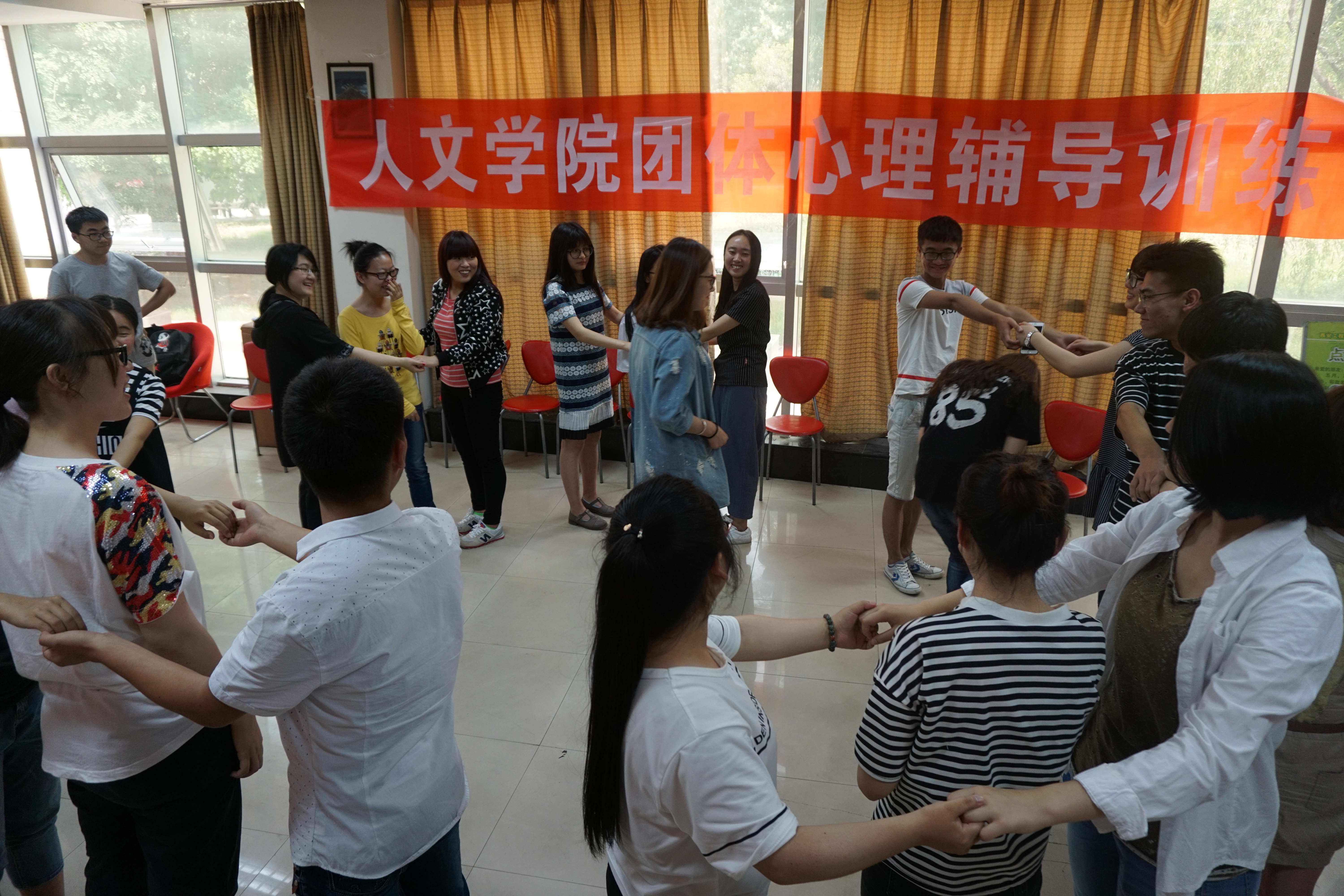 5月11日下午,2026世界杯官网在临潼校区老员工活动中心团体辅导室,举行了“善待自我,关爱他人,珍爱生命,健康成长”心理健康系列活动之团体心理辅导训练活动。邀请了公司老员工心理健康教育与咨询中心的连灵老师主持本次活动,2026世界杯官网心理辅导员周晓惠及公司2015级的心理委员和部分班委参加了本次活动。