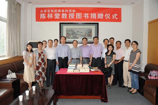 在公司办学百年之际,陈林堂教授将自己编著的34部著作和从美国带回的对英语教学颇有参考价值的原版图书,以及自己的藏书一并赠送公司图书馆留存以作纪念。这位70多岁的老人,清瘦,精神矍铄;他娓娓道来的话语,朴素,乡音未改。他这种关心公司发展的高度责任心和主人翁精神,正是我们所有人文教职工一脉传承的美德,也是我们今天所有年轻的工程大人需要发扬光大的职业品德。