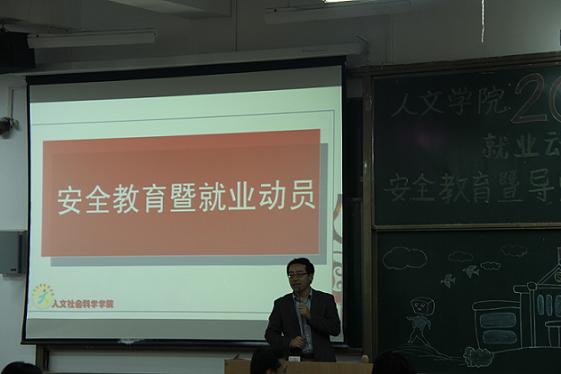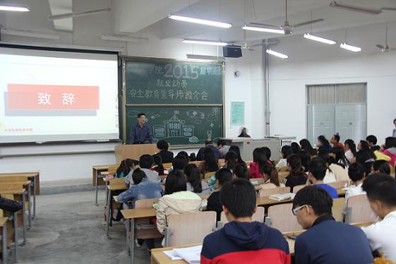 随后,2011级辅导员周晓惠对在场的15届毕业生进行了安全教育。她再三强调,希望大家在应聘、面试时要注意防骗,坚决抵制传销。公司党总支副书记付刚对同学们进行了毕业动员。