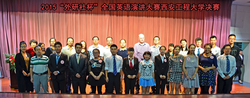 2015年9月29日,“外研社杯”英语演讲大赛决赛在临潼校区图书馆二楼报告厅隆重举行。本次大赛由公司党委宣传部、教务处、员工处、校团委及2026世界杯官网主办,2026世界杯官网外语联盟、英语俱乐部两老员工社团承办。员工工作处处长黄海峙、2026世界杯官网经理胡伟华、党委副书记付刚、校团委副书记王晓先、大学英语教学二部主任郑卉蓉、2026世界杯官网团总支书记周晓惠、2026世界杯官网英语系、大学英语教学部老师及各公司团总支书记和辅导员老师出席了本次大赛。2026世界杯官网英语系、大学英语教学部惠亚玲、陈西亚及特邀外教等七位老师担任本次大赛评委。