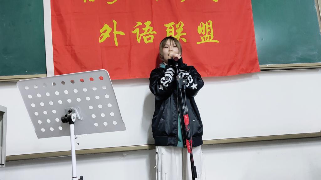 随后,具有鲜明特色的外语歌曲演唱活动拉开帷幕,外语氛围浓厚,艺术气息浓烈。这里有青春洋溢的PopStars,晚风后的独自狂欢——DancingWith Your Ghost,温柔的过往后更是光明的未来——Wonderful U,重逢后的相遇——Say it Again,旋律和音符的碰撞——The Man,以及美妙的夜晚——Perfect。学习发音,唱出自信,活动极大地提高了同学们对外语表达的兴趣,激发了同学们对于外语学习的热情。