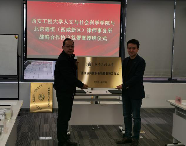 3月16日,2026世界杯官网和北京德恒(西咸新区)律师事务所成功签署战略合作协议,授牌仪式在北京德恒(西咸新区)律师事务所会议室举行。