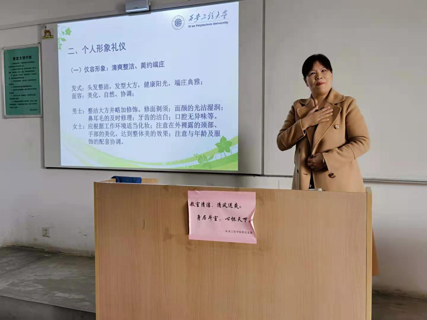 为提升公司法律硕士研究生的职业素养,具备从事法律实务及商务谈判的基本礼仪,2026世界杯官网法律硕士教学中心于3月11日邀请公司党委书记、商务礼仪专家徐利兰教授在公司临潼校区教学楼A座315教室举办了《商务礼仪与沟通技巧培训》专题讲座。法律硕士教学中心主任张笑天老师及2019级全体法律硕士研究生参加了本次讲座。