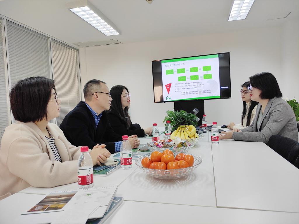 会谈结束后,王伟一行看望了2019级翻译硕士研究生徐乐、袁晨君两位同学,关心了解其顶岗实习与学习、生活情况,勉励他们遵守公司纪律,努力提升综合素养,圆满完成实习任务。