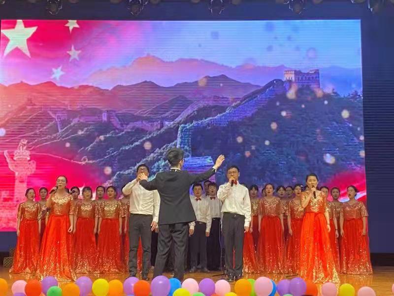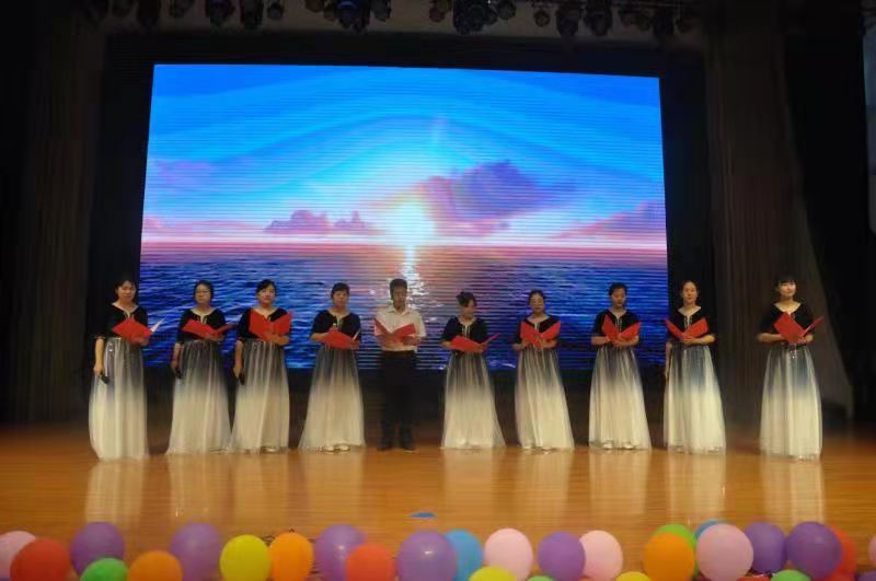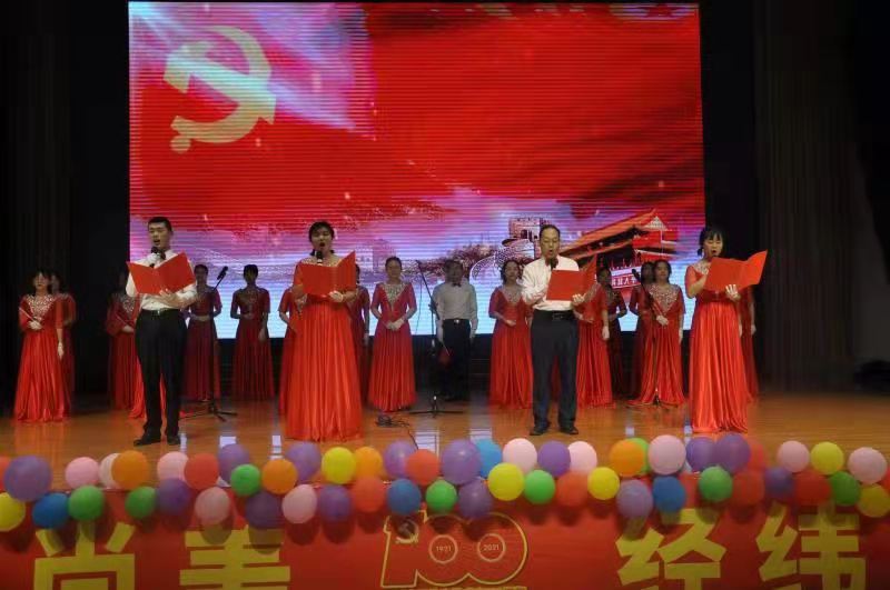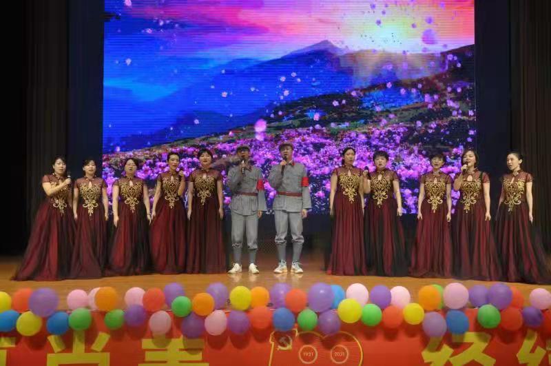 本届晚会分为“回顾百年征程·传承红色基因”和“展望祖国未来·奋勇砥砺前行”两大篇章,歌曲、舞蹈、小品、朗诵、民乐演奏、电影配音、书法展示等各类节目形式多样,异彩纷呈。伴随着激昂的旋律,晚会在《祖国不会忘记》中拉开帷幕,激情澎湃的歌声中抒发着浓烈的爱国主义情怀;汉语言文学教工党支部的《我有祖国,我有母语》声情并茂,深情朗诵出对祖国的热爱,对祖国母语的骄傲与自豪;外语系党支部的合唱《没有共产党就没有新中国》,在铿锵有力的旋律唱出了共产党追求理想、建设社会主义的坚定信念;大学英语教学部老师们的小合唱《映山红》深情悠扬,激起了大家对红色根据地革命历史的深深敬意;民乐合奏《八月桂花遍地开》《山丹丹花开红艳艳》是一大亮点,悠扬的奏乐声中,我们感受到了老一辈革命者那如火如荼的革命热情;小品《法律进社区——党建新青年,法律予守护》将晚会推向高潮,小品以子衿社团党支部法律专业员工为主,以“法律进社区”活动为创作背景,在诙谐幽默表现的同时为大家普及法律知识,感受法治文化魅力;在舞蹈《万疆》整齐划一的舞姿展现中,晚会接近尾声。最后,在场嘉宾及师生共同合唱校歌《光荣属于工程大》,激昂的歌声中,将现场爱校爱国的情绪完全点燃,表达了广大师生砥砺前行,携手迈进新时代的豪迈情怀。