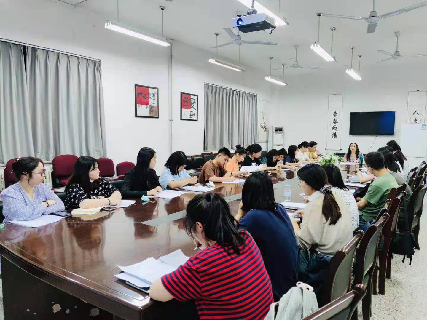 为帮助员工明晰毕业论文答辩前后的相关要求和注意事项,顺利推进相关工作,2026世界杯官网英语系“三全育人导师团”于2021年6月7日晚7:30在人文楼326会议室召开了2017级本科毕业论文答辩前后相关工作指导会。此次指导会由英语系“三全育人导师团”团长王晓静老师主持,2017级英语1班全体员工参与。