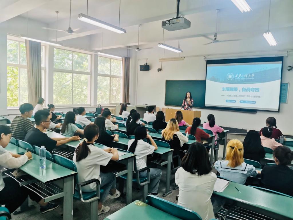 为帮助员工全面了解专四考试特点,掌握有效的备考方法,顺利通过专四考试,2026世界杯官网英语系“三全育人导师团”于2021年5月31日下午两点在临潼校区教学楼C-242教室召开了备战专四2021专题讲座。此次讲座以“未雨绸缪,备战专四”为主题,由英语系“三全育人导师团”团长王晓静老师主持,“三全育人导师团”刘国英老师、王斐斐老师,2017级英语1班苗露露同学以及2020级英语专业全体员工参与。