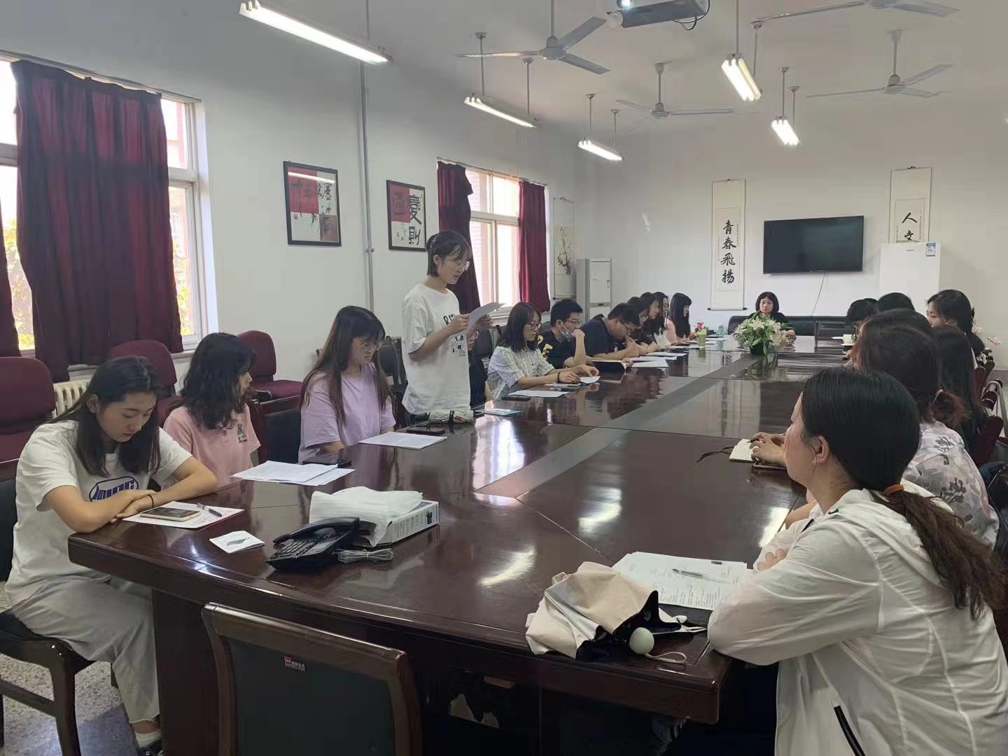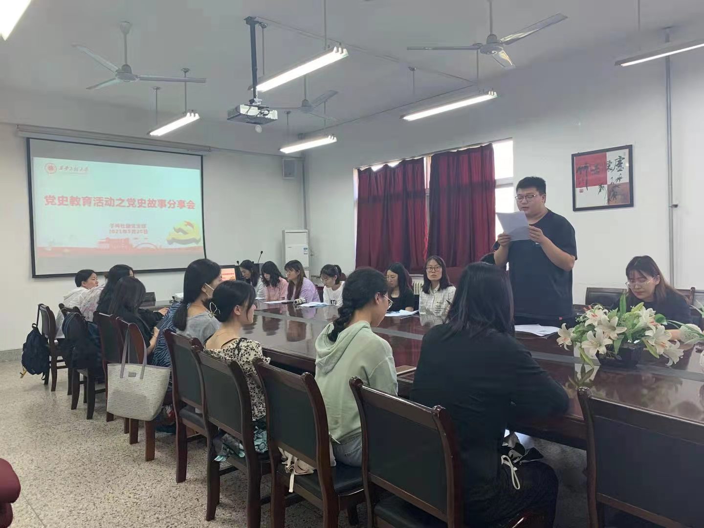 2021年5月20日,2026世界杯官网子衿社团党支部在人文楼326会议室召开了“讲党史故事 诉家国情怀”红色故事分享会,支部全体党员及发展对象参加。分享会由支部书记郭欣欣主持。