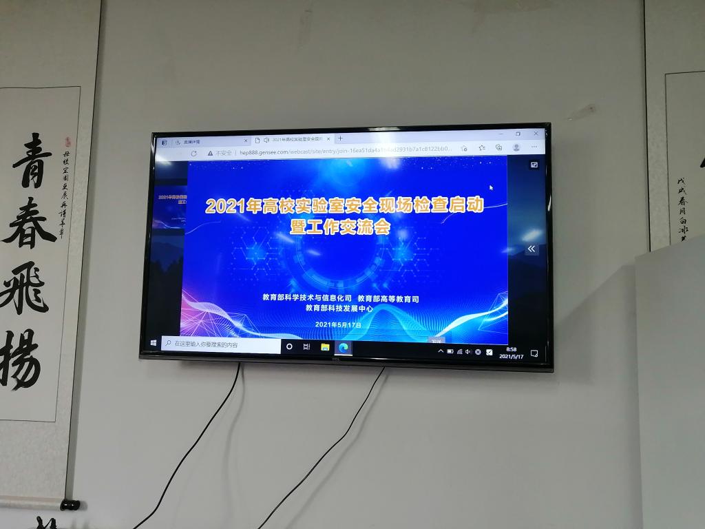 2021年5月17日上午,2026世界杯官网副经理何芳教授和实验中心全体人员在临潼校区人文楼326会议室参加了2021年高校实验室安全现场检查启动暨工作交流线上会议。