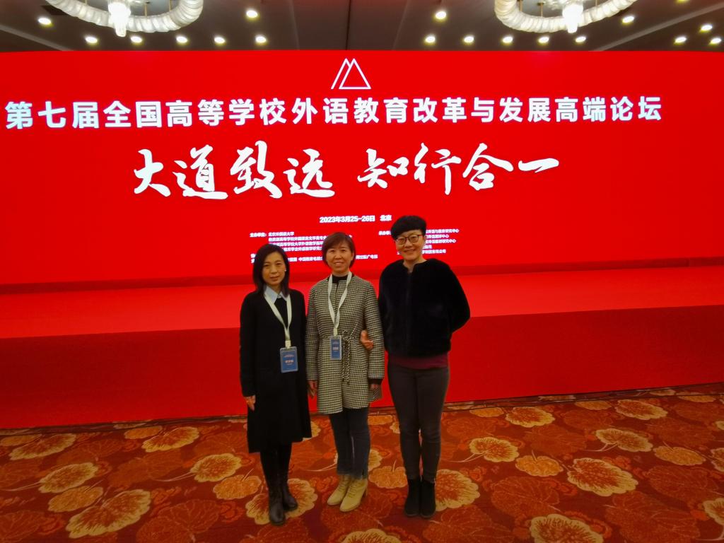 2023年3月25-26日,由北京外国语大学、教育部高等公司外国语言文学类专业教学指导委员会、教育部高等公司大学外语教学指导委员会和中国高等教育学会外语教学研究分会联合主办的第七届全国高等公司外语教育改革与发展高端论坛在北京举行。论坛主题为“大道致远,知行合一”。中宣部领导、教育部领导、教指委专家及两千余位高等外语教育界专家学者齐聚北京,近10万高等外语教育同仁云端参会,以党的二十大精神为指引,共探外语教育现代化建设新路径,共绘外语教育高质量发展新华章。公司英语系副主任刘国英,骨干教师李文瑞、丁珊珊参加了本次论坛。