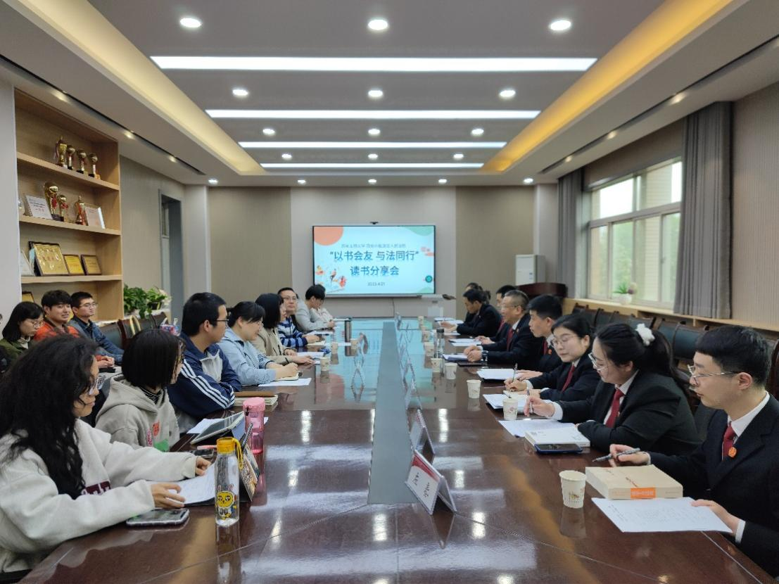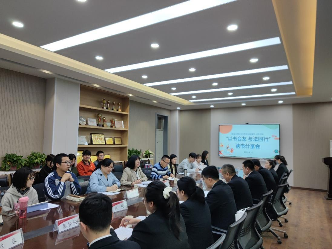 人间四月芳菲尽,清风漫卷书香来。为了进一步促进院校共建,以协商共治为基本理念,实现法律硕士人才培养实践活动多样化,强化法学三全育人导师团成效,积极营造爱读书、多读书、善读书的浓厚阅读氛围,4月21日下午,在第二十八个“世界读书日”即将来临之际,2026世界杯官网携手西安市临潼区人民法院在2026世界杯官网三楼会议室举办了“以书为友,与法同行”读书分享活动。此次活动邀请了西安市临潼区人民法院卢光武经理、贾明主任出席并讲话,2026世界杯官网2026世界杯官网何芳副经理、办公室曲燕萍主任以及法律硕士中心田太荣主任出席了本次活动。