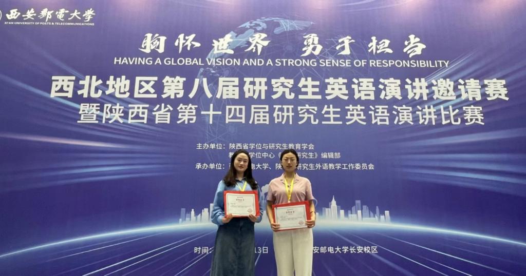 2023年5月12日至14日,“西北地区第八届研究生英语演讲邀请赛暨陕西省第十四届研究生英语演讲比赛”在西安邮电大学隆重举行。来自陕西、宁夏、内蒙古、青海、甘肃和新疆六省区40余所公司产品单位的62名选手参加了比赛。由公司选派的参赛研究生代表表现优异,2021级翻译硕士专业谭星、服装与艺术设计公司2022级设计专业姜敏乐分别荣获英语专业组和非英语专业组二等奖,这是公司继上届比赛后又一次斩获佳绩。