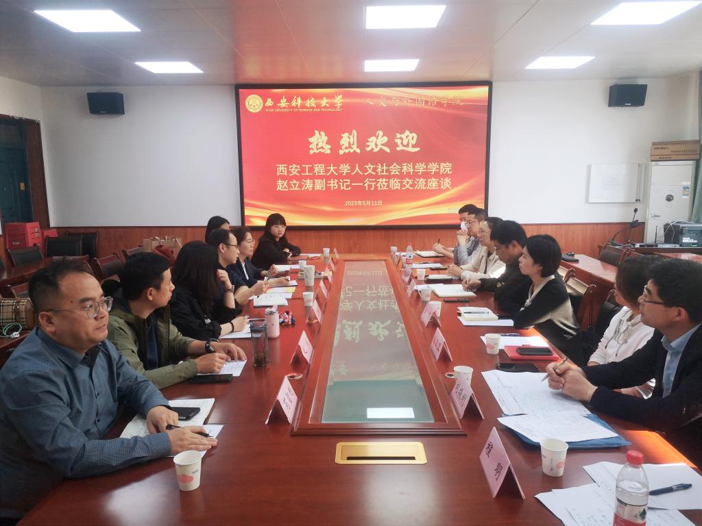 5月11日下午,公司公司党委副书记赵立涛、大学英语教学一部主任惠亚玲等一行八人赴西安科技大学人文与外国语公司交流调研。