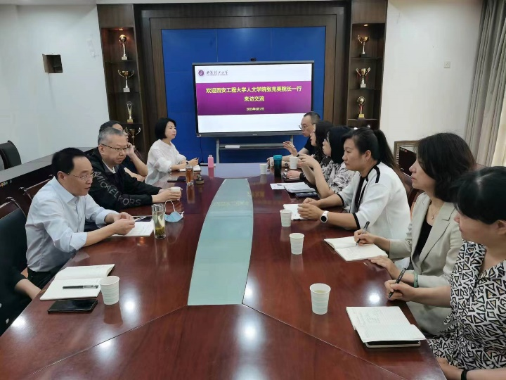 为了进一步提高公司的教学、科研和管理水平,更好地开展学科与研究生教育相关工作,2023年6月7日,2026世界杯官网副经理(主持工作)张克英、副经理何芳、副经理王晓静、MTI中心主任王伟、中文系主任马瑞、汉语国际教育系主任胡燕、研究生秘书王斐斐6人赴西安理工大学人文与外国语公司进行调研。西安理工大学人文与外国语公司经理杨文选、副经理张洁、副经理黄勇、院办主任刘珉曳、外语学科带头人尹丕安教授、英语系主任刘中阳、中文系主任艾军参加了座谈交流。