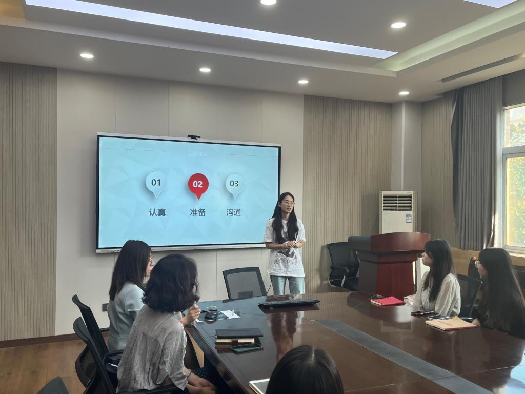 会议伊始,胡燕对同学们的到来表示欢迎,并向大家介绍了本次交流会分享学习经验的三位研究生,希望同学们通过本次会议了解研究生学习生活以及选修课、论文撰写等具体事宜,提前做好学业规划,少走弯路。接着,三位研究生分享了学习经验。王丹和冯俏俏分别从上课学习、文献阅读、考证和竞赛、综合测评四方面详细进行了介绍,提到了学习使用统计软件进行数据分析的重要性,并向大家展示了文献管理文档和文献笔记如何制作。李雅雪将研究生学习生活总结为三个词:认真、准备、沟通,认真对待各门课程的学习;提前做好各个阶段的准备;碰到问题及时和同学导师沟通。还介绍了每年学业的重点规划,倡导大家以赛促学;并对发表期刊的要求和现状进行介绍,提出了合理化建议:最后,胡燕对本次会议做出总结,希望大家持有积极的心态,珍惜研究生阶段的学习生活,多读书,积累知识,提升科研能力与个人素养。