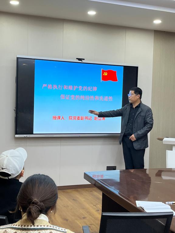 赵立涛以《严格执行和维护党的纪律,保证党的纯洁性和先进性》为题,带领各入党积极分子了解中国共产党根本组织制度的内容及其重要意义,指出要保持党的纯洁性须加强反腐倡廉制度建设。要求入党积极分子在日常的工作和学习中,要严于律己,不断完善自我,争取早日成为党的一份子。