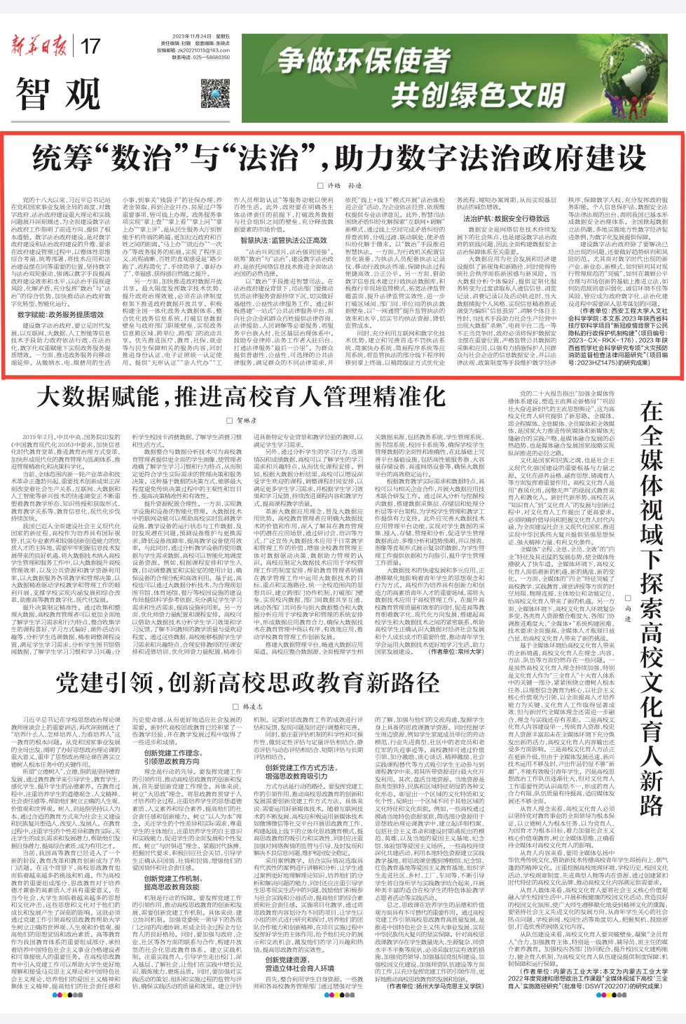 近期,公司2026世界杯官网孙迪副教授、2021级法律硕士许皓的文章《统筹“数治”与“法治”,助力数字法治政府建设》在《新华日报》上发表。