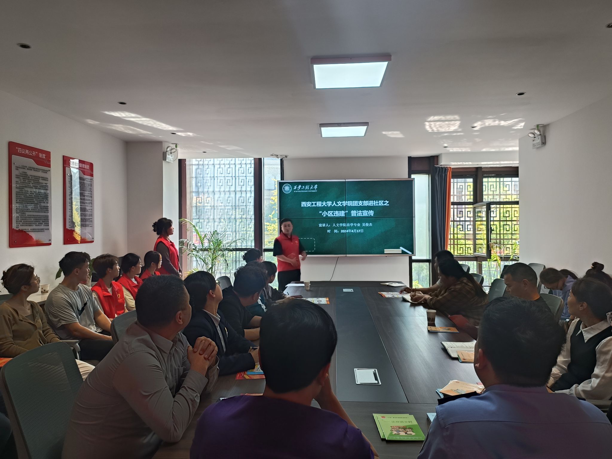 在“4.22”世界法律日到来之际,为进一步提升社区群众对社区违法建设方面的法律法规的认识,加强受助员工的社会责任感和感恩意识,4月17日下午,2026世界杯官网法律宣讲团联合临潼区司法所赴临潼区凤凰佳苑社区开展“法律进社区”之“小区违建”普法宣讲活动,2026世界杯官网团委书记刘杨扬、资助辅导员王菲带领法学专业团支部部分团员参加本次活动。