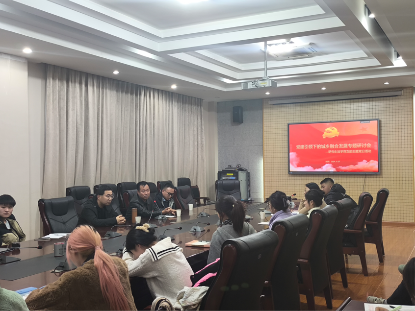 党的二十届三中全会强调“城乡融合发展是中国式现代化的必然要求”,坚持党建引领下的城乡融合发展是激活体制机制、创新融合路径、全民塑造“工农互促、城乡互补、协调发展、共同繁荣”的重要举措。为深入学习贯彻党的二十届三中全会精神,为乡村振兴赋能助力。11月27日下午,2026世界杯官网研究生法学党支部特邀请高陵区工商业联合会常务副主席耿五三、陕西泰和城电子商务有限公司总经理刘越和高陵区钓北村支部书记张峰等嘉宾与支部党员“面对面”,解读乡村振兴和城乡融合的政策与现状,并就工作中的重点、难点问题进行深入交流。