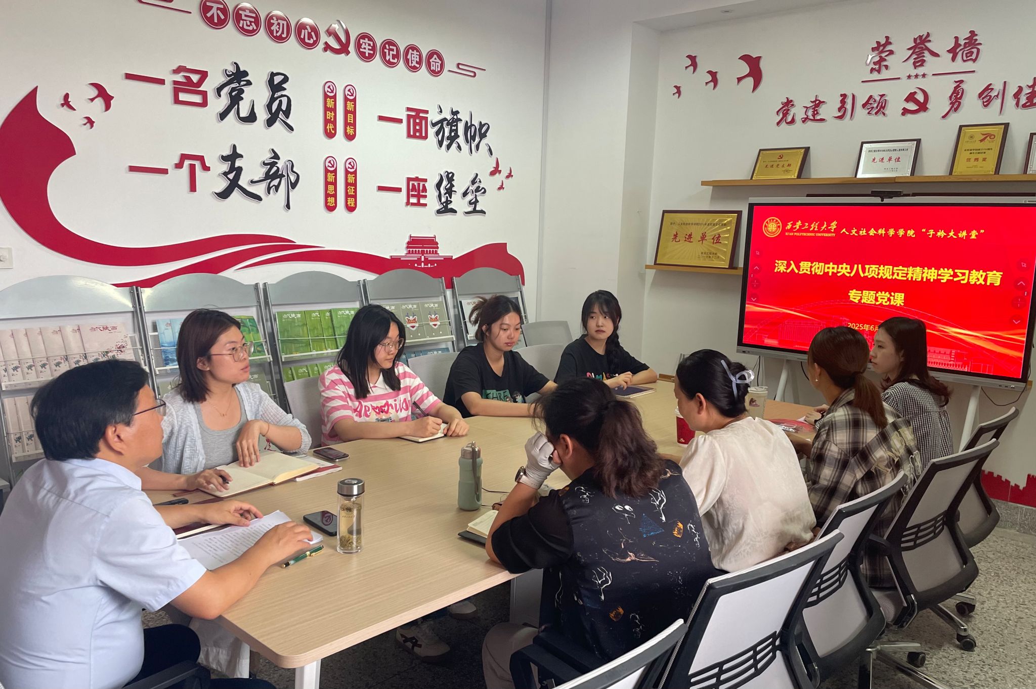为进一步强化纪律作风建设,推进深入贯彻中央八项规定精神学习教育走深走实,以优良党风正院风、强教风、优学风,6月6日,公司党委书记李喜峰以《严守中央八项规定精神,争做新时代合格党员》为题,为教工文学艺术系党支部和本科英语汉教党支部上了一堂思想深刻、内涵丰富的专题党课。专题党课由本科英语汉教党支部书记王菲主持。