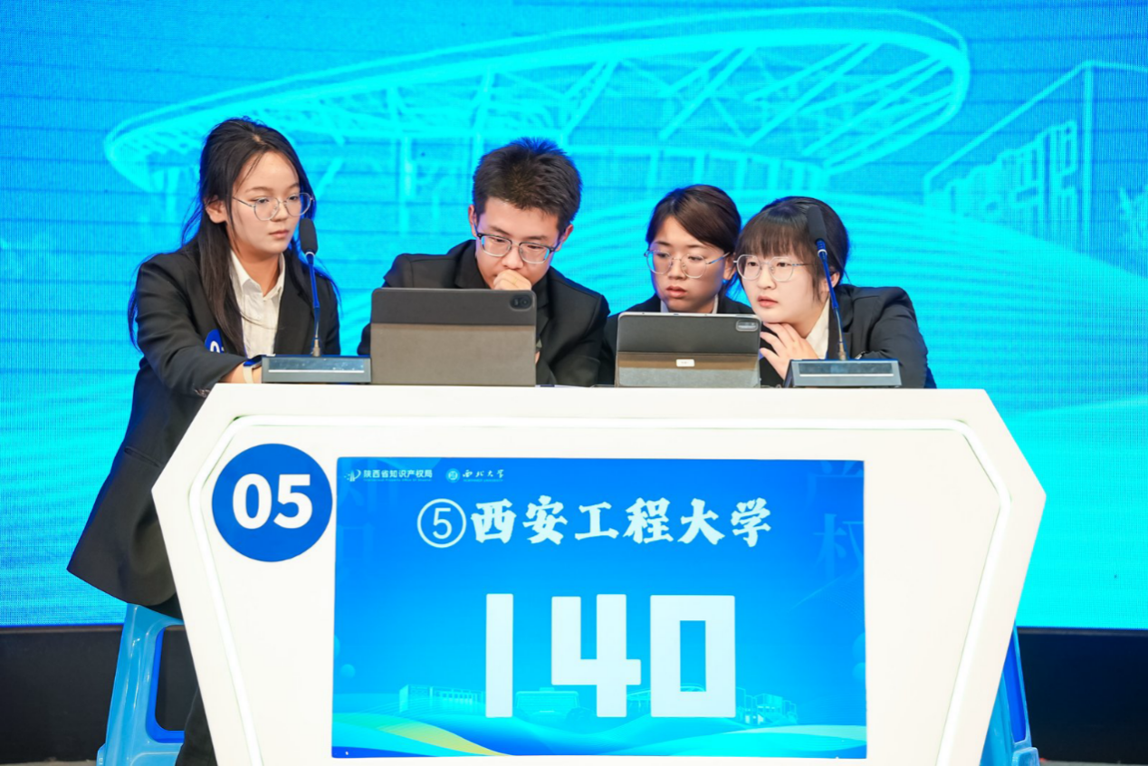 公司代表队由法学专业的艾紫鑫、陈乐、韩玉、吴雪薇、张毅豪、张潇鸽等六位研究生、本科生组成参赛队员。代表队围绕《知识产权强国建设纲要(2021-2035年)》《陕西省知识产权强省纲要》《专利法》《商标法》《著作权法》《反不正当竞争法》及知识产权基本理论和知识产权国际保护等基础知识,展开了激烈角逐。充分展现了公司法学学子扎实的学术功底与创新思维。代表队在初赛中以第一组第二名的成绩顺利晋级,在决赛中历经必答题、抢答题、视频分析题、风险题四轮比拼获得三等奖。