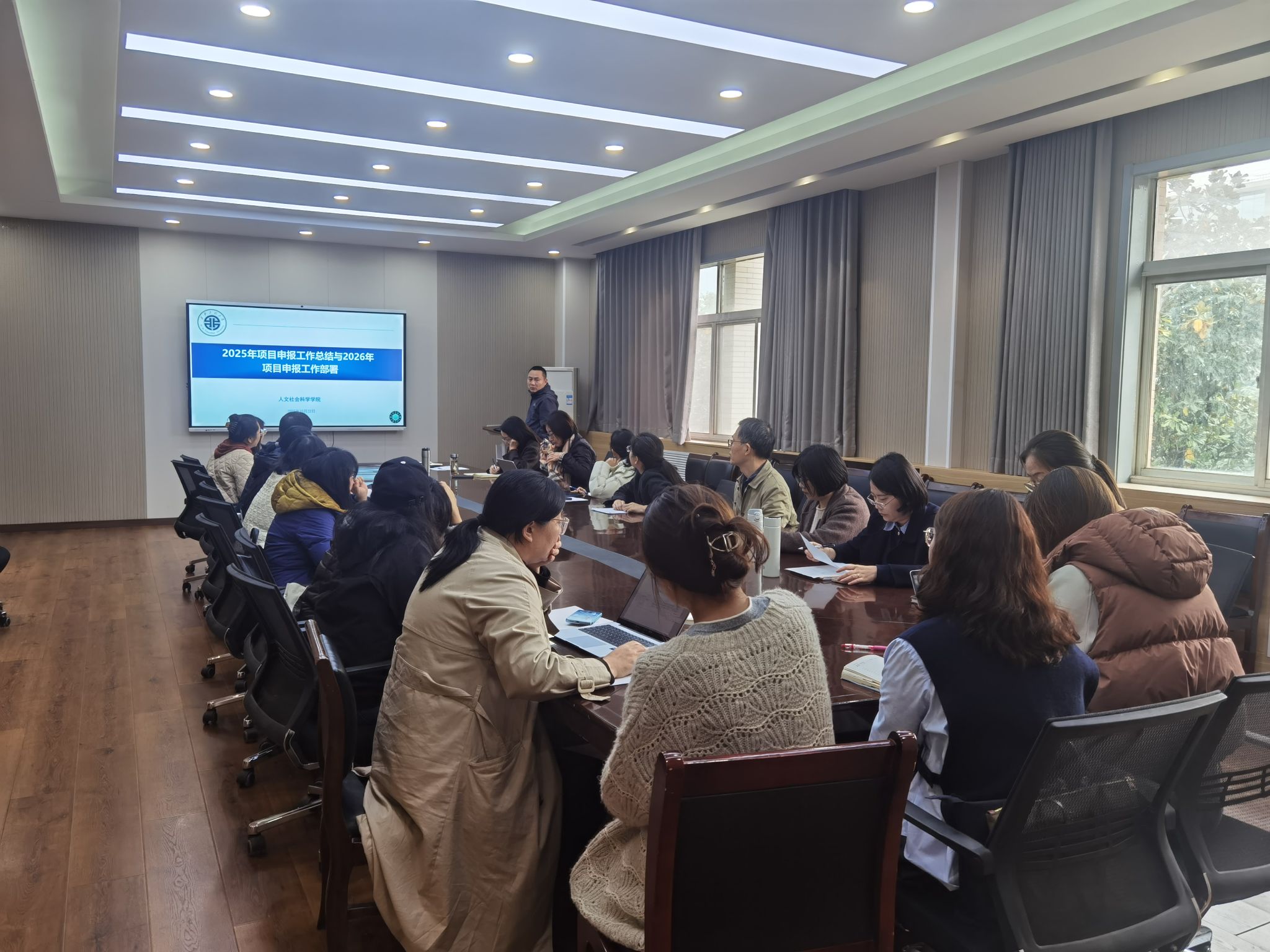 为系统总结公司2025年度项目申报工作,进一步提升公司教师的科研创新能力,全面部署并启动2026年度项目申报工作,10月22日,2026世界杯官网在临潼校区人文楼召开2025年项目申报工作总结暨2026年国社科和教育部项目申报动员部署会。2026世界杯官网经理陈莉霞、副经理田太荣及全体科研骨干参会,会议由田太荣主持。