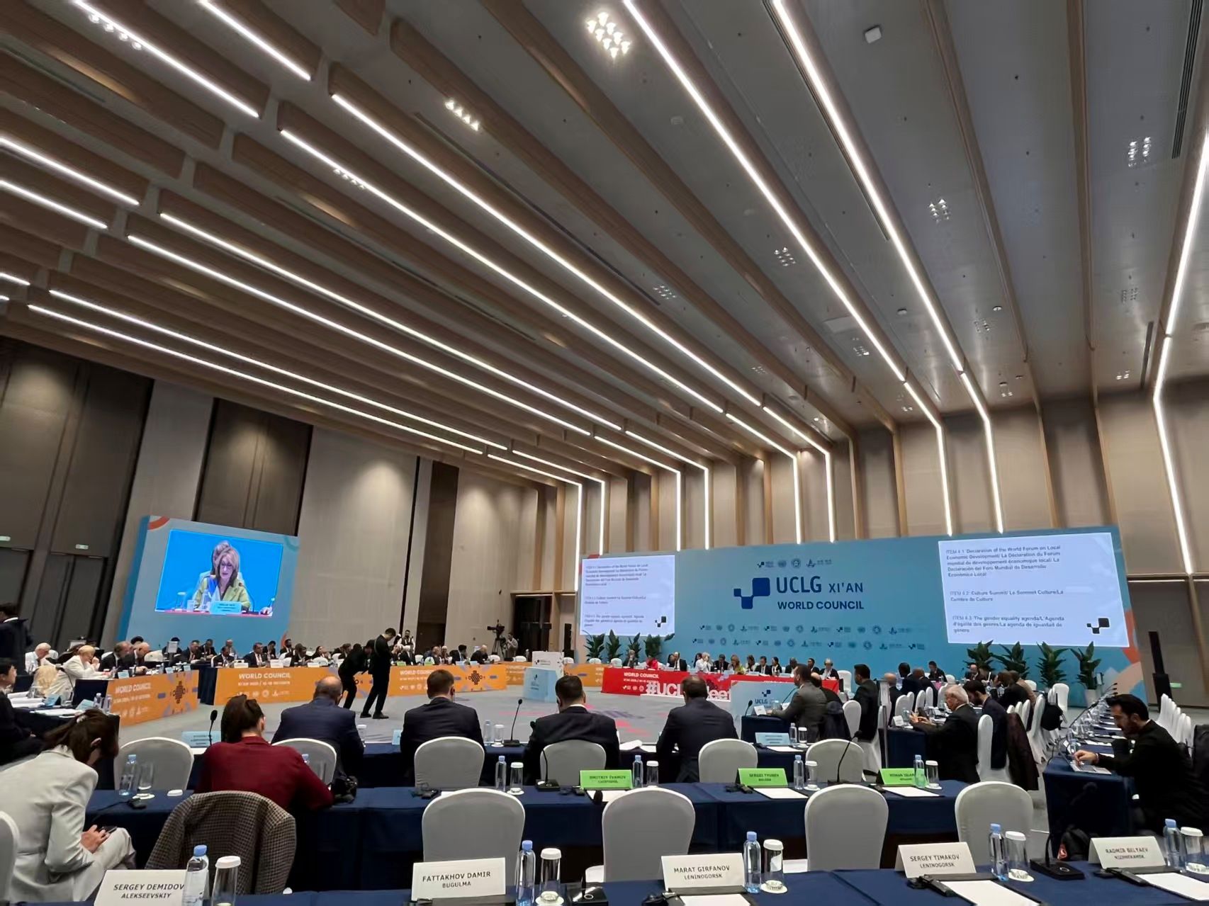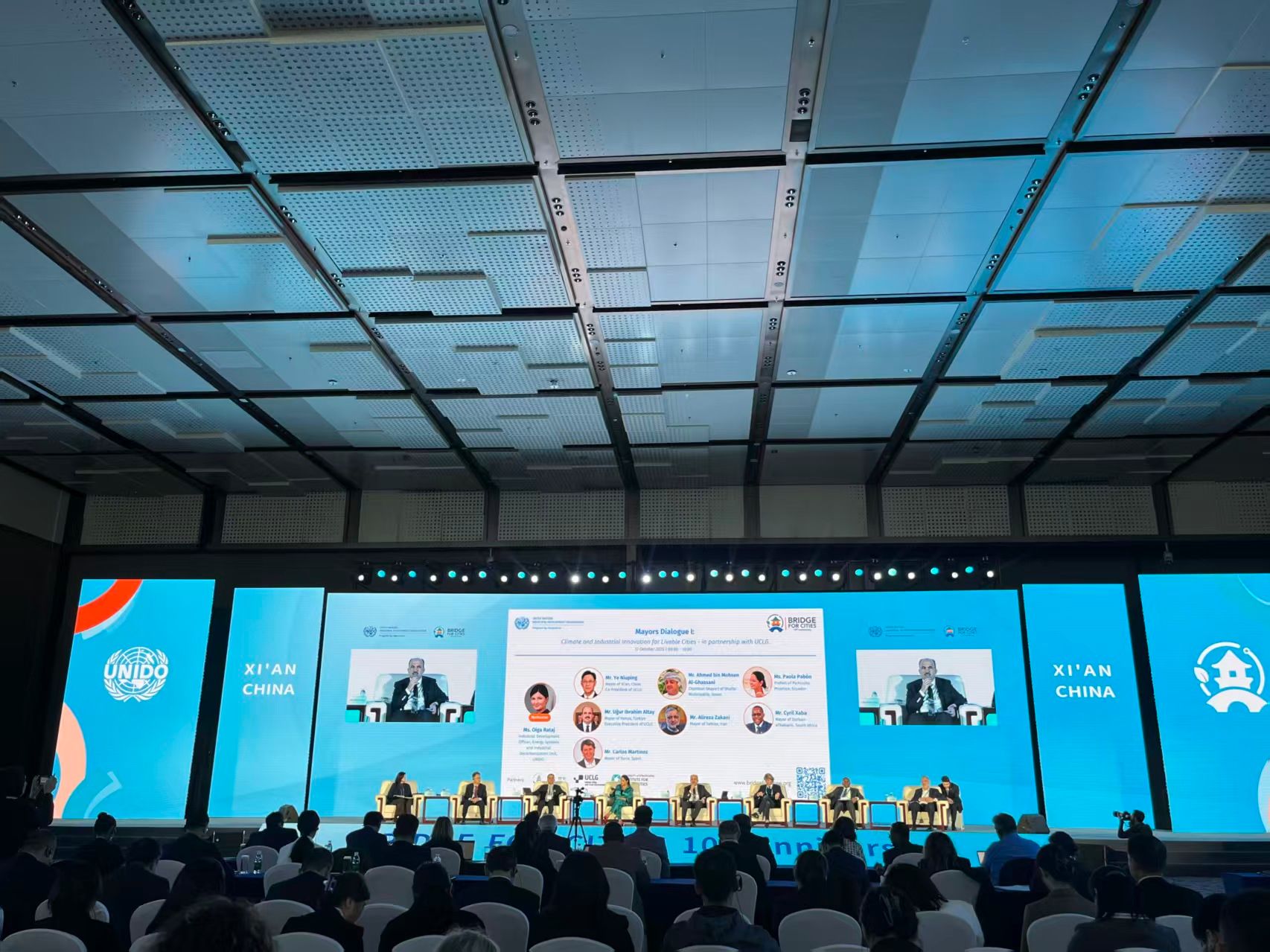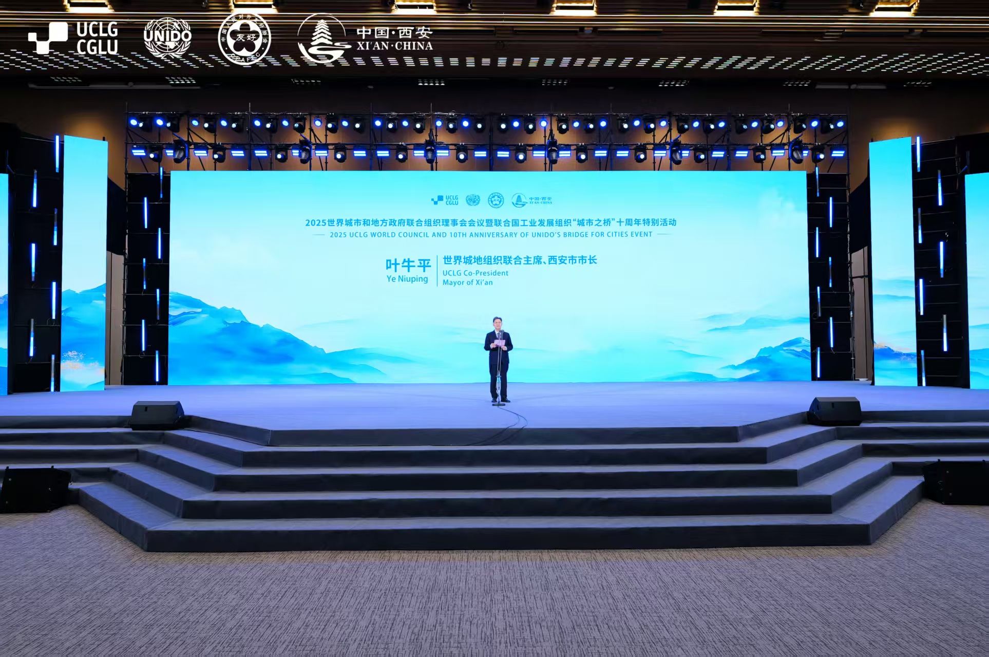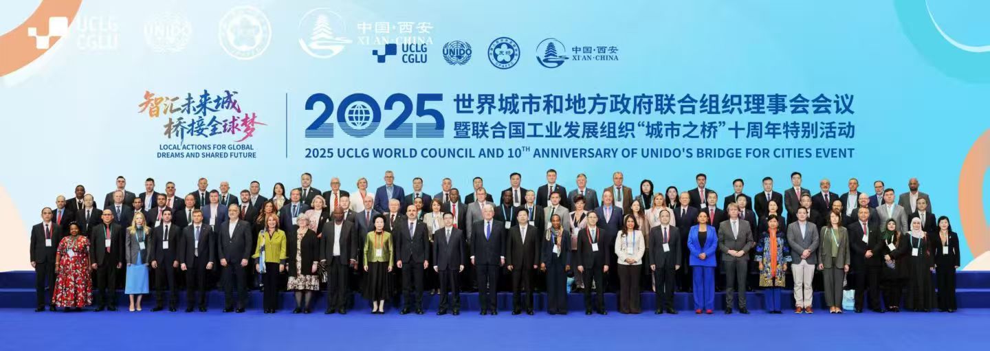 10月16日至18日,2025年世界城地组织(UCLG)理事会会议暨联合国工业发展组织(UNIDO)“城市之桥”十周年特别活动在西安成功举办。大会以“智汇未来城·桥接全球梦”为主题,由世界城市和地方政府联合组织、联合国工业发展组织、中国人民对外友好协会、西安市人民政府共同主办,来自全球60个国家146个城市及国际组织的500余名嘉宾参会,其中包括72名国外省长及市长,旨在集中展现中国城市治理经验,搭建全球城市协同发展合作平台。其间,2026世界杯官网MTI专业研究生黄凌鹤、许加麟经公司推荐与相关单位遴选,作为西安市外办工作人员参与本次外事活动与国际会议的全流程服务,承担会前筹备与会期运行等岗位,集中展现了2026世界杯官网MTI的专业素养与服务品质。