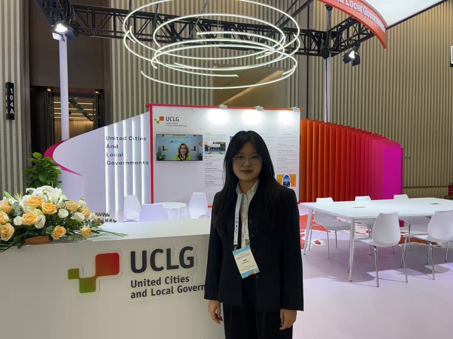 会前筹备阶段,在市外办领导及老师指导下,两人在友好城市交流中心办公室围绕外宾行程确认、议程与证件资料中英文本审校、场馆与展区位置确认等环节,完成多轮复核;会议期间,两人在西安国际会展中心驻点办公,承担外事文件翻译与审校、信息对接、贵宾引导与接待等现场任务。两位同学在主论坛、世界理事会会议、执行局业务会议、市长对话、主题研讨以及“城市治理与产业创新展”“中外企业交流会”等板块中全程参会、认真观摩,在服务岗位之余系统梳理议题要点与嘉宾观点,在实践中加深了对大会主题与议程内涵的理解。