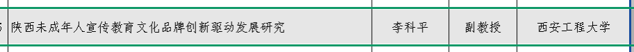 近日,陕西省哲学社会科学工作办公室公布了习近平文化思想研究中心陕西省协同研究基地重大项目立项名单,公司李科平副教授申报的《陕西未成年人宣传教育文化品牌创新驱动发展研究》成功获批。