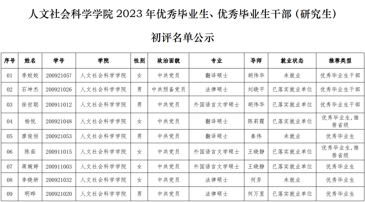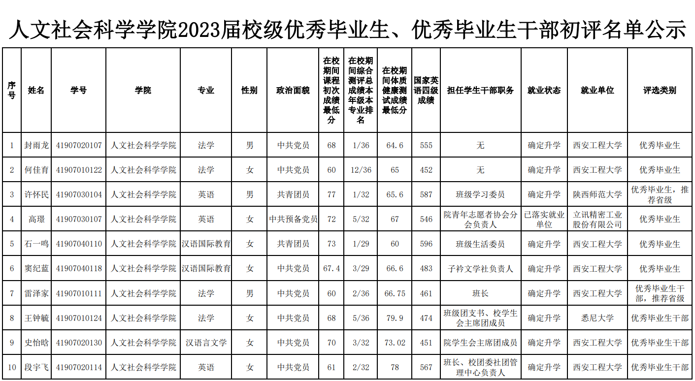 按照《2026世界杯官网关于评选2023届校级优秀毕业生和优秀毕业生干部的通知》的有关安排,经员工个人申请、公司评审等环节,拟推荐2019级许怀民等19人为2023届优秀毕业生、优秀毕业生干部,拟推荐2019级雷泽家等4人参评陕西省2023届普通高校优秀毕业生和优秀员工干部。