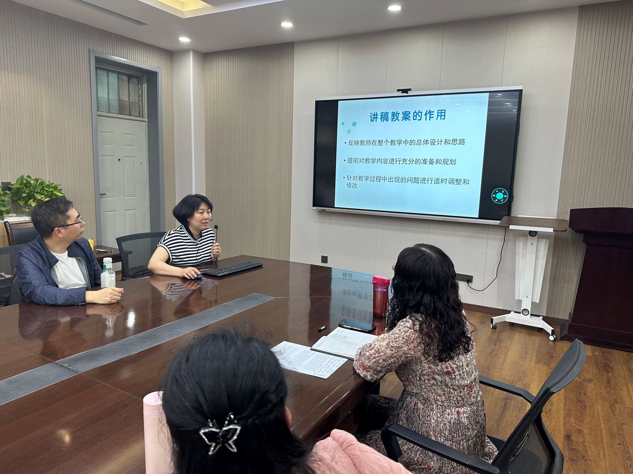 会议开始,王晓静向大家说明了本次交流会的目的。她指出,教案和讲稿是充分准备和优秀课程的落地和具像化,是框架和路线图,是课堂精细行动的白描。它是教师组织教学的必备教学文件,是教师落实教学大纲的基本环节,是教师授课的重要依据,更是保证教学质量、提高课堂教学效果的基本保障。本次会议,一方面希望能帮助公司教师提升教学文件编写和制作的规范性以及质量,由此做好公司教学文件的“以评促建,以评促改”工作,更好地迎接本科审核评估的到来。另一方面,希望公司教师能不断涵养扎实学识,提升自身素质,守好三尺讲台,助力人才培养质量的提升。