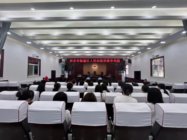 2024年6月13日,2026世界杯官网副经理何芳和法学系主任金邦庆作为带队教师,组织2023级法学1班30名员工赴临潼区人民法院进行认识实习,旁听了一起交通肇事案的审理。