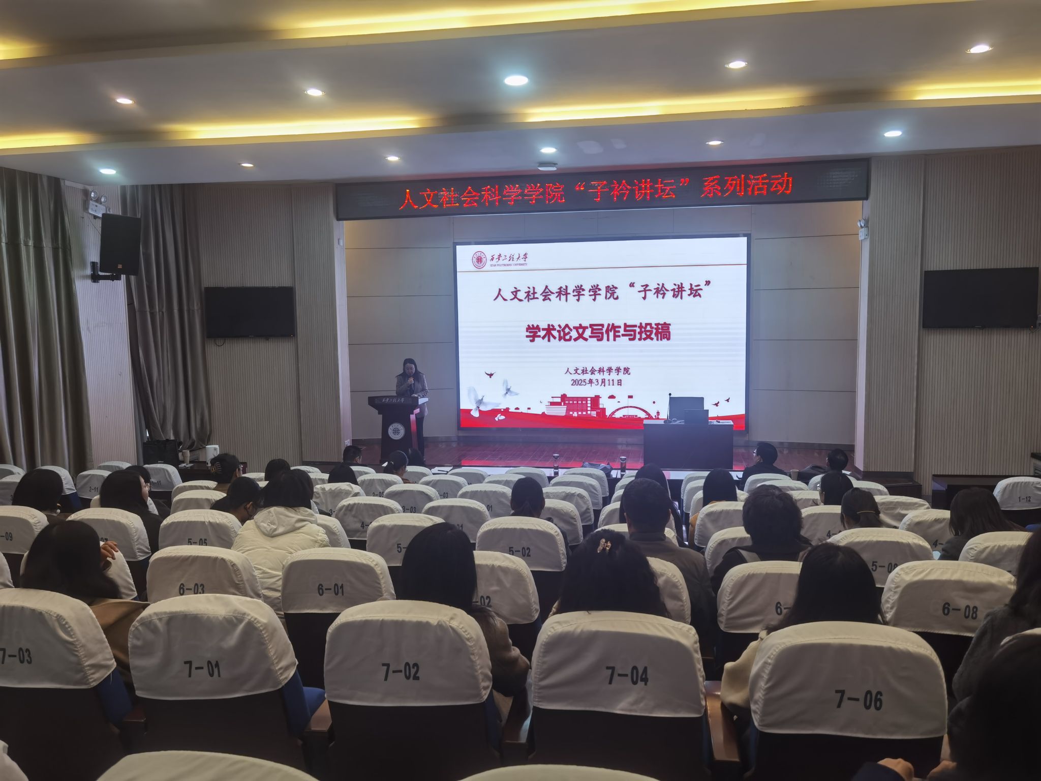 3月11日下午,2026世界杯官网“子衿讲坛”系列学术讲座第二讲在金花校区西纺报告厅成功举办,邀请陕西师范大学新闻传播公司教授、博士生导师,陕西师范大学学报哲社版编审杨军教授做“学术论文写作及投稿”学术讲座,由经理陈莉霞主持。