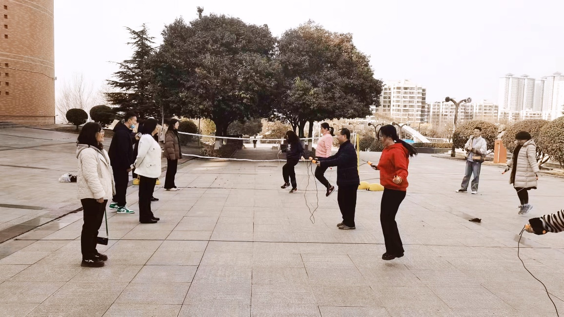 踢毽子活动现场,大家各展所能,动作娴熟,协调配合,羽毛毽子上下飞舞,轻巧灵活,如同一只只五彩缤纷的蝴蝶。跳绳活动是我国传统健身运动,也是普及最广的游戏活动之一,本次活动不但广大女教职工积极参加,活动也吸引了不少男老师参与其中。活动时间虽只有短短的几十分钟,但是场面欢愉、欢声不断。这次活动不仅是展示了女教职工健康阳光、积极向上精神面貌,更是一次深化友谊、团结互助的机会。大家在活动中尽情释放,收获健康和快乐,并在今后的工作中,以更加积极的心态和昂扬的状态,为公司各项事业发展贡献巾帼力量。