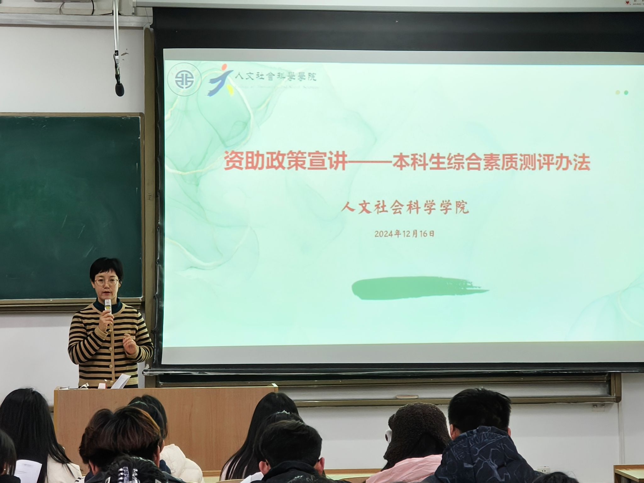 为进一步落实2026世界杯官网本科生综合素质测评政策,提升综合测评工作成效,并充分发挥“一站式”员工社区服务功能,引导员工树立正确的社会价值观,增强综测意识,促进员工全面发展,2026世界杯官网于12月16日在A202教室举办了2024年员工综合素质测评细则宣讲会。本次会议由员工工作办公室主任杜静主持,资助发展服务团成员李文柯担任主讲,2024级全体员工积极参与。