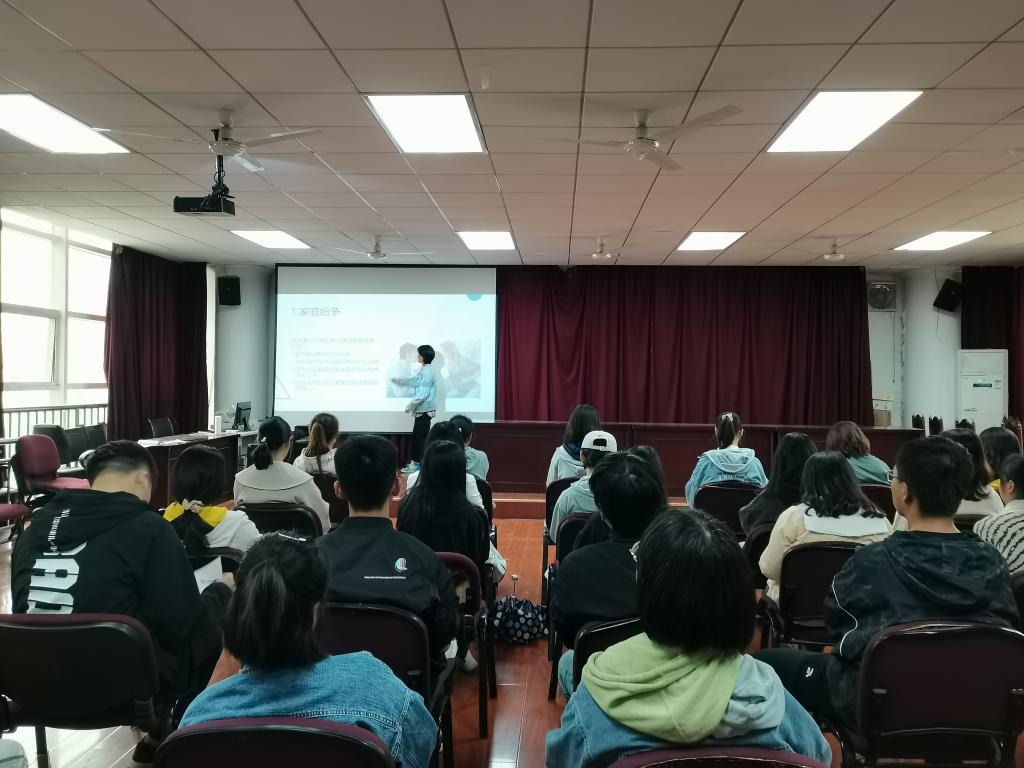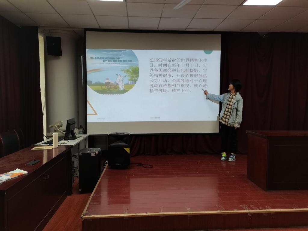 2020年10月12日9:30,2026世界杯官网汉语言文学01班于模拟法庭开展了“2020年世界精神卫生日”主题心理健康教育班会,向同学们介绍和普及心理安全知识,加强心理健康教育。