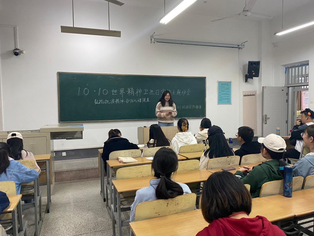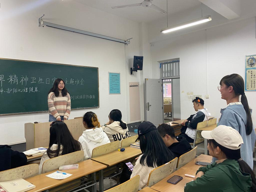 为了弘扬抗疫精神,强调心理健康的重要性。汉语国际教育1801班于10月10日在C栋教学楼474教室举办“世界精神卫生日”宣传活动——弘扬抗疫精神,护佑心理健康”主题班会,汉教1801班全体同学参加本次班会,班会由高一捷主持。