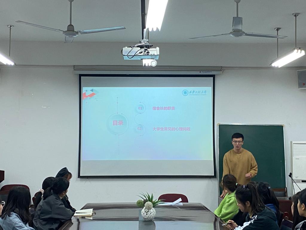 首先,刘杨扬带领全体宿舍长学习了2026世界杯官网员工手册,对《2026世界杯官网员工公寓中心管理规定》进行了解读。接着,刘杨扬全方位地讲解宿舍长的职能与责任,通过实例分享,引领宿舍长进一步明确工作要求,深刻意识到自身的责任与义务,并着重强调了宿舍长对于调节好人际关系、促进身心健康的重要性。随后,刘杨扬从大学学习、生活、人际交往等角度出发,通过对真实案例的分析,列举了老员工常见的心理问题,并针对问题提出了应对方法,引导各宿舍长了解、重视心理健康问题。此外,刘杨扬向全体宿舍长普及了公司心理辅导室的具体预约办法及办公室地点,他要求宿舍长在日常生活中关注每一位同学的心理健康,发现问题及时上报。