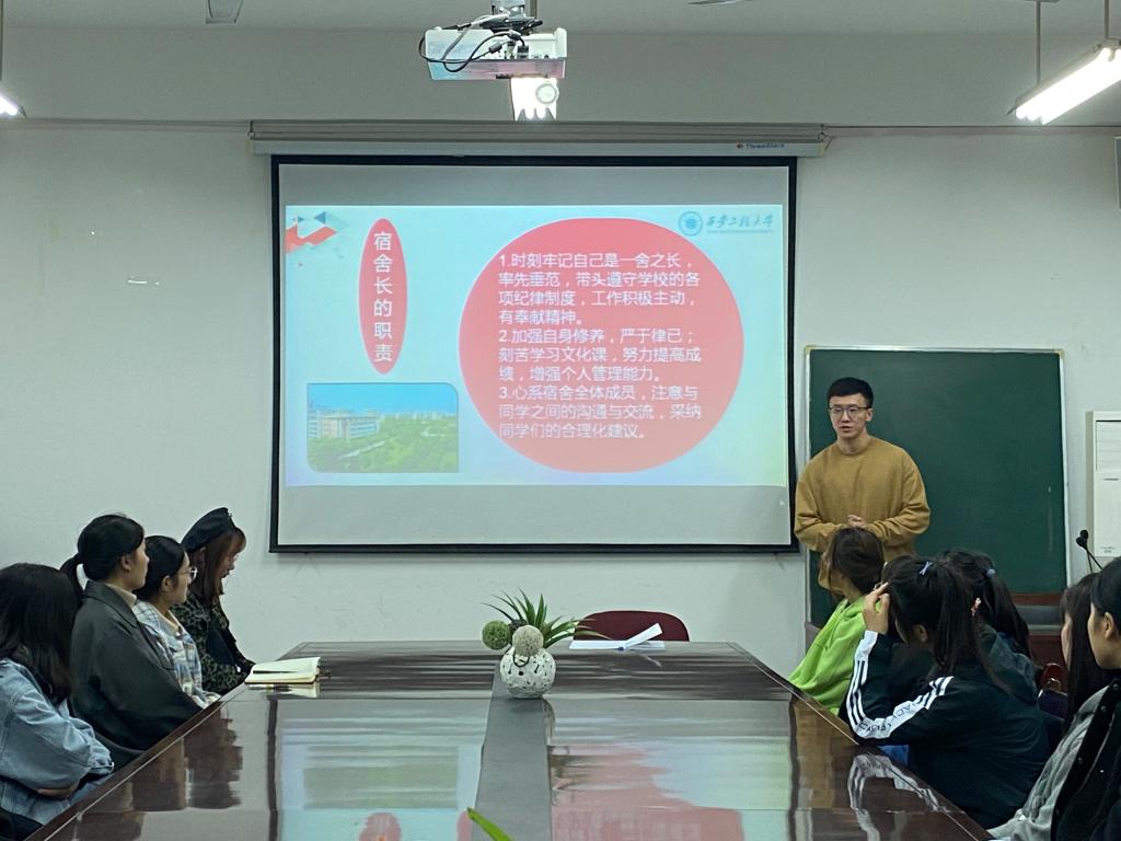 为进一步加强宿舍管理,充分发挥宿舍长的引领作用,11月18日19:00,2026世界杯官网在人文楼326会议室召开2022级本科生宿舍长安全教育专题培训会。公司辅导员刘杨扬担任主讲人,2026世界杯官网2022级全体本科生宿舍长参加本次培训。