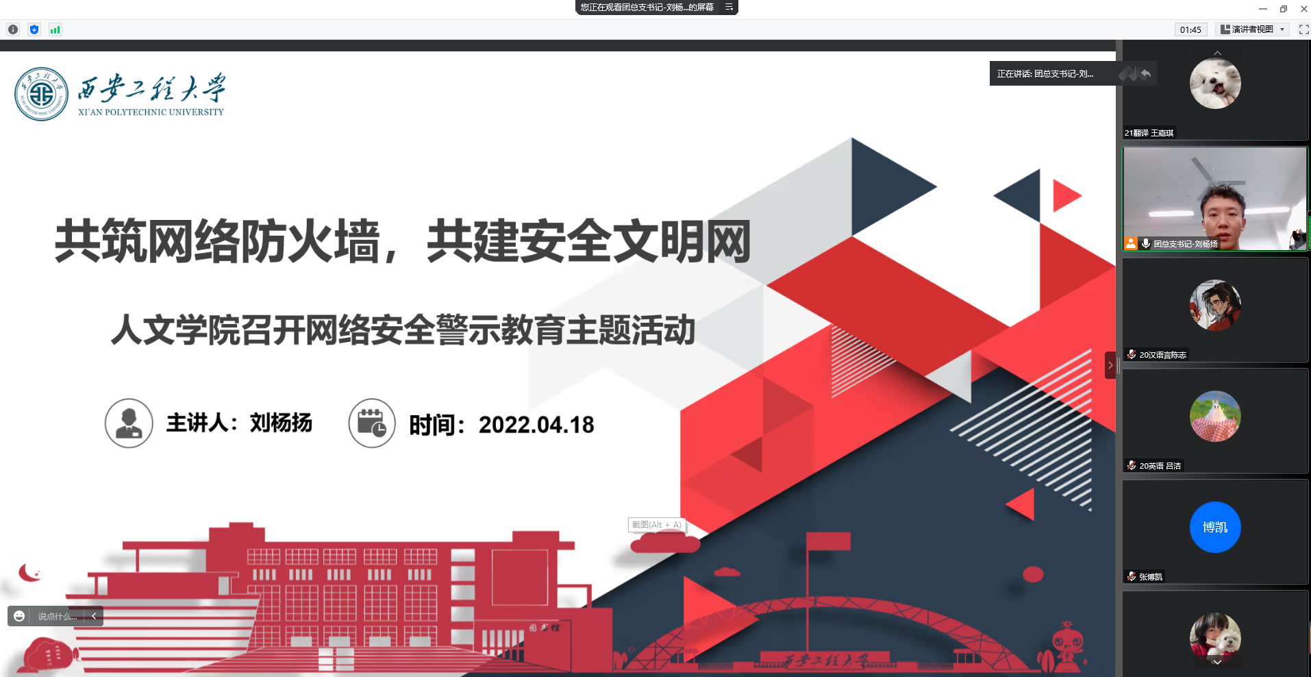 本次网络安全警示教育主题活动的顺利召开提高了同学们的思想警惕,增强了同学们健康上网、依法用网、文明护网的意识,让我们一起守好网络安全的防线,共创安全、文明、美好的精神家园。