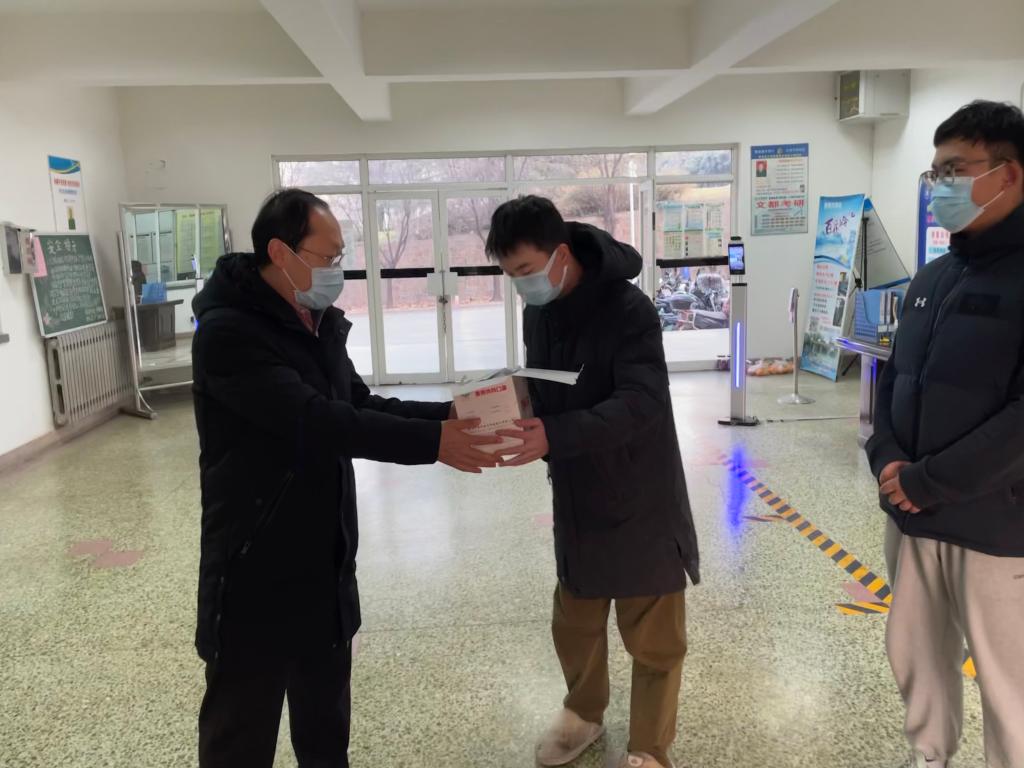 为把疫情防控期间员工的防疫工作落实做细,2021年12月31日下午,2026世界杯官网经理胡伟华,辅导员王德利、周晓惠、刘杨扬走访员工宿舍,慰问疫情防控期间在宿舍隔离的公司全体本科生与研究生,向同学们传达公司的关心和问候并叮嘱相关注意事项,还为大家送去了防疫必备的口罩。
