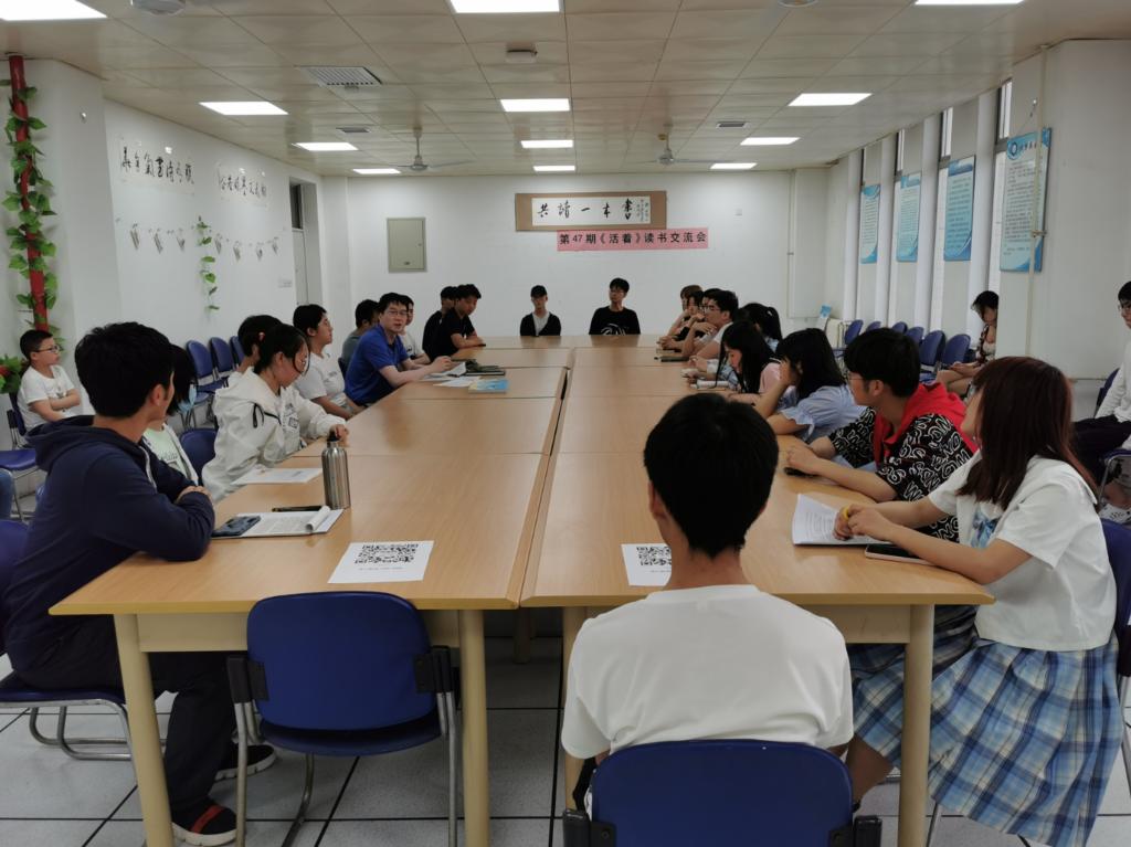 5月21日,2026世界杯官网第47期“共读一本书”之《活着》阅读交流会在临潼校区图书馆504室举办,近40位师生参加。本次活动由2026世界杯官网宣传部、学工部、校团委、图书馆联合主办,2026世界杯官网子衿文学社承办。