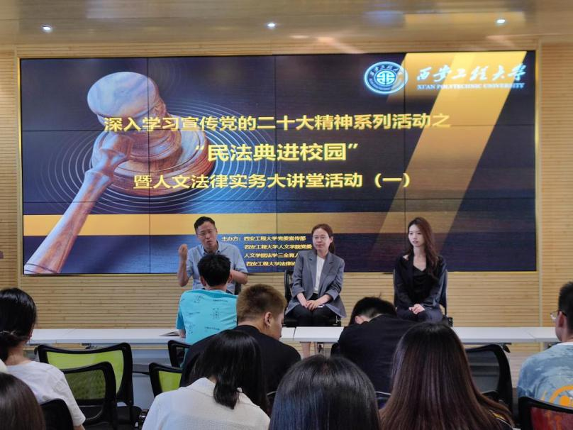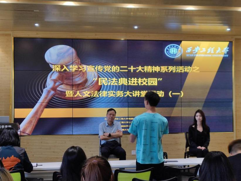 为深入学习宣传贯彻党的二十大精神,落实省普法办、省司法厅《关于转发2023年美好生活·民法典相伴主题宣传方案》通知要求,加强民法典普法工作,提高师生法律意识,营造文明、平安、和谐的校园育人环境,5月24日,由党委宣传部和公司党委联合举办的“民法典进校园”系列活动在临潼校区举行。