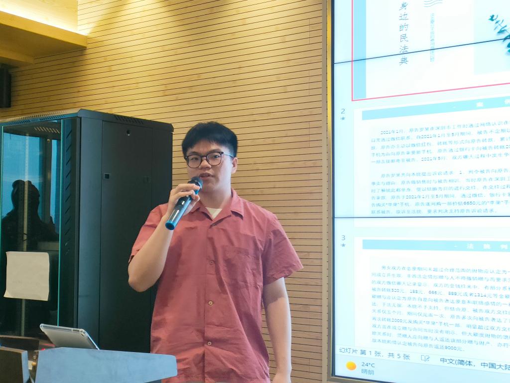 24日晚,人文学子在计算机楼614会议室开展案例分析活动。此次大讲堂分别由五位宣讲人带来:孙艺源“离婚纠纷案”、徐庆磊“分手后的费用返还问题”、邵帅“正当防卫的判定”、谈九鼎“合同纠纷案”以及成梦涵“泸州遗赠案”。主讲人通过具体案例作为切入点,在分析的过程中,根据具体的法律规定以及最高人民法院出台的相关司法解释,对罪与非罪、此罪与彼罪进行剖析与讲解。在案例分析与感悟交流两个环节,同学们的讨论尤其激烈,面对复杂的案情,各抒己见,纷纷提出自己的见解。