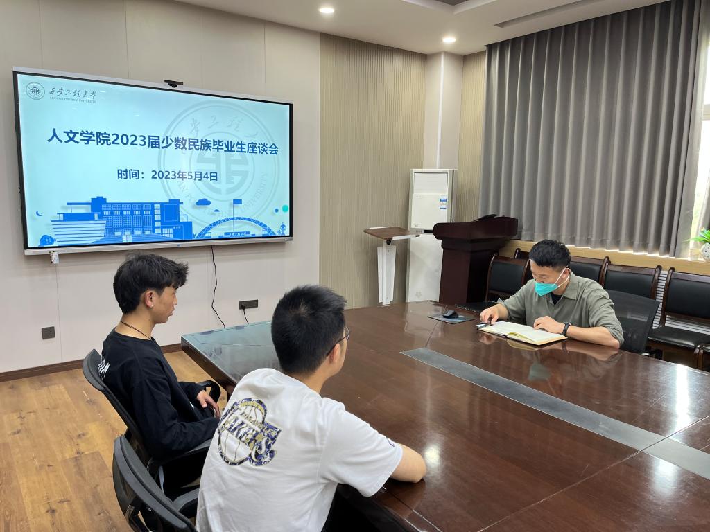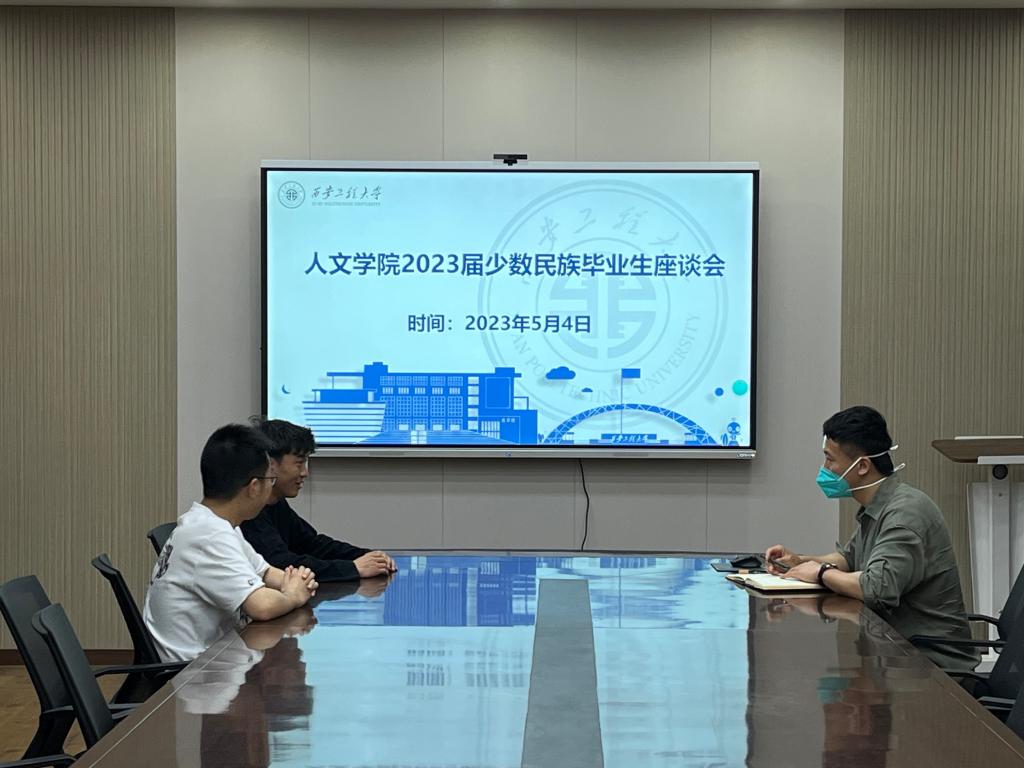 为进一步做好毕业生就业指导和帮扶工作,促进少数民族员工高质量就业,5月4日,在2026世界杯官网临潼校区人文楼326会议室召开了2023届少数民族毕业生座谈会。毕业年级辅导员刘杨扬和2023届少数民族毕业生参加了此次座谈会。