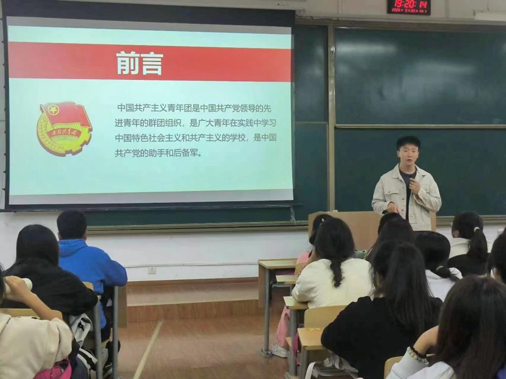 讲座伊始,刘杨扬带领大家从六个方面介绍团员的权利及义务,随后向同学们介绍了团旗、团徽、列举常见错误团徽事例,并介绍使用团徽和团徽图案的情形和场合,之后又介绍团员发展程序、团员推优入党程序、“三会两制一课”等多方面了解新修订团的章程。通过学习,使同学们对共青团的知识有了更深刻得认识,同时也使大家强烈地意识到作为新时代青年要不负青春、不负韶华,始终发扬实干苦干,求真务实得精神。