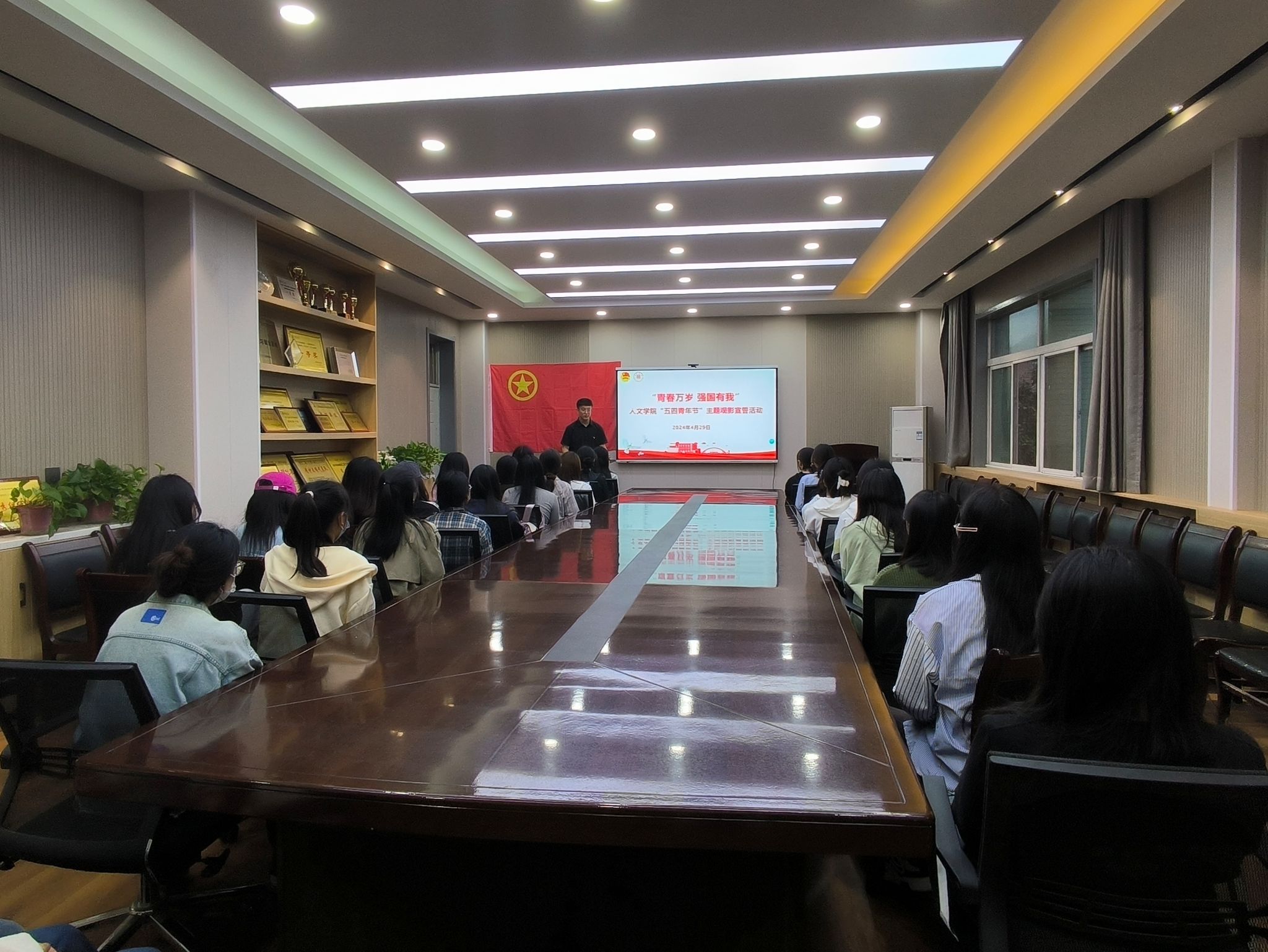 为进一步引导广大团员青年学习和弘扬五四精神,加强爱国主义教育,庆祝第75个五四青年节,2026世界杯官网于4月29日晚在人文楼326会议室组织开展“青春万岁强国有我”五四青年节主题观影宣誓活动,团委书记刘杨扬及35名团员青年代表参加此次活动。