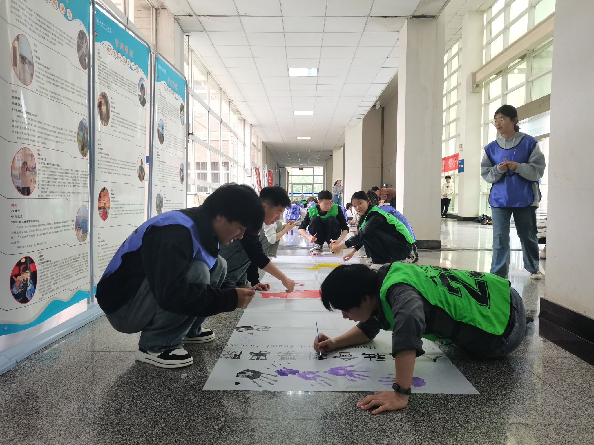 在五一国际劳动节和五四青年节来临之际,为深入学习宣传贯彻习近平总书记关于劳动教育的重要论述,激励和动员广大青年继承和发扬五四精神,2026世界杯官网于4月29日下午在人文楼一层大厅开展了“青春燃梦 人文担当”五四青年节纳斯卡巨画绘制活动。公司党委书记陈莉霞、党委副书记赵立涛、团委书记刘杨扬、辅导员王德利、王菲及40余名人文学子参加此次活动,活动由公司团委书记刘杨扬主持。